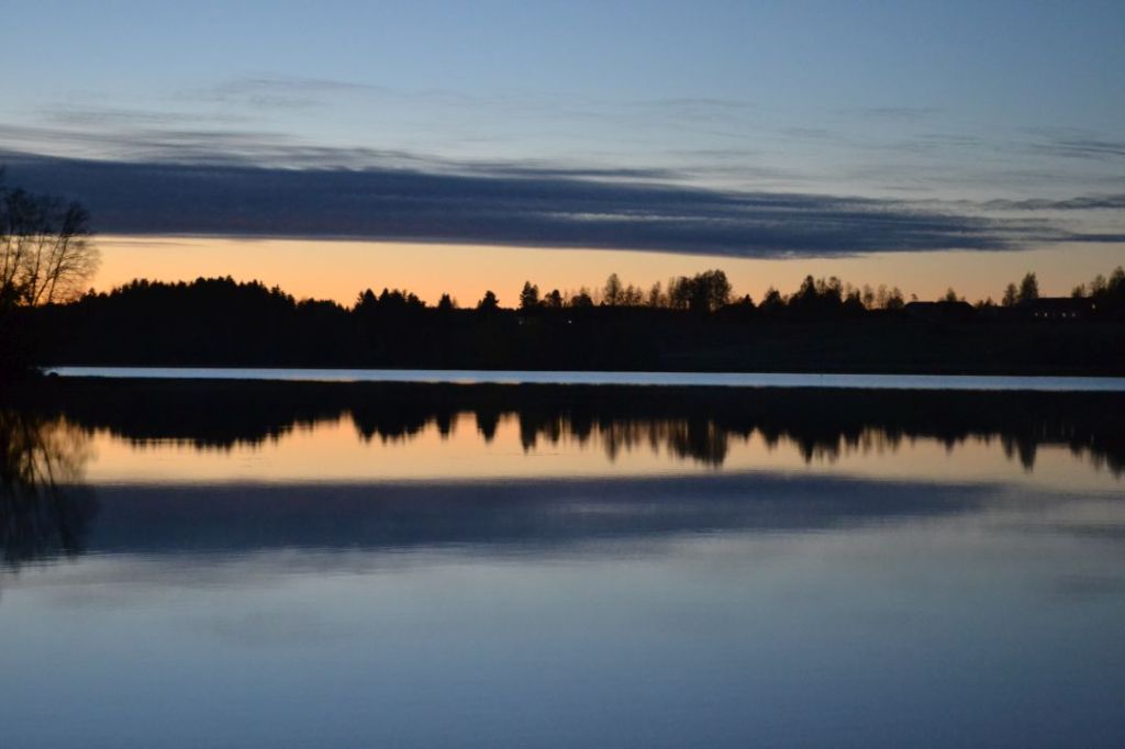 Sama maisema aamun sarastaessa ja illan hämärtyessä.